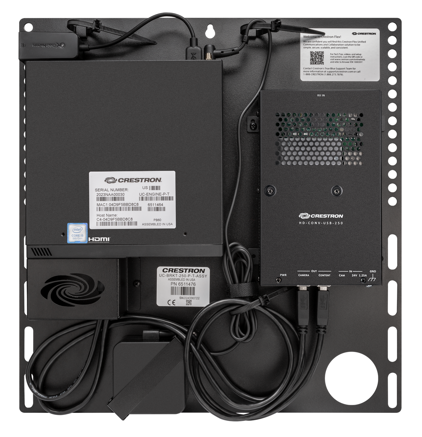 The UC Bracket Assembly provides preassembled components on one ready-to-mount bracket to simplify installation. The assembly can be mounted on a wall, or it can be attached to the rear of the display device. Crestron's direct connection method further simplifies installation with a single connection from the touch screen to the UC Bracket Assembly.3