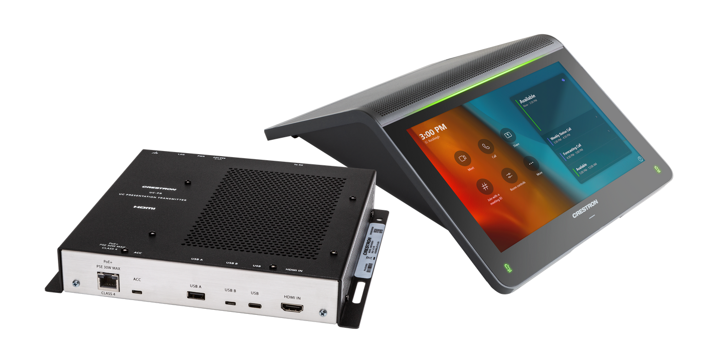 - Direct connection option between UC Engine and Crestron Flex tabletop conference device for simple installation and configuration
